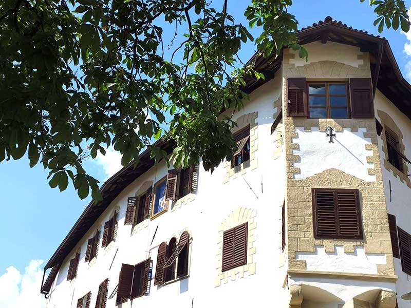 La tenuta Grustdorf si trova nel centro di Appiano San Michele. La tenuta è circondata da mura all’interno delle quali si possono scorgere vigneti, frutteti e un orto. Anche se la tenuta risulta essere posizionata in centro, offre un'isola di relax con tanto verde.