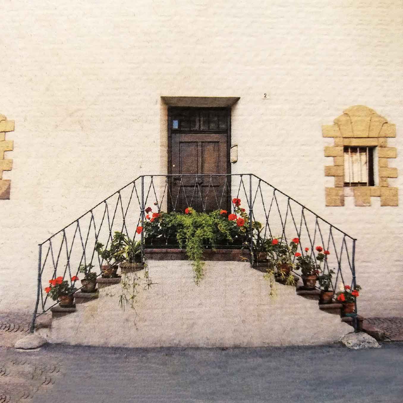 Der Ansitz Grustdorf liegt im Zentrum von Eppan St. Michael. Mit seinem Wein, Obst- und Gemüsegarten ist der Ansitz von einer schützenden Hofmauer eingefriedet. Obwohl zentral gelegen, bietet der Hof eine Insel der Erholung mit reichlich Grün.